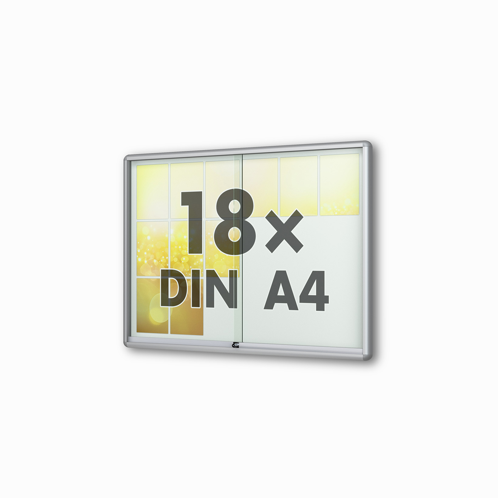 18 x DIN A4 Schaukasten Moveo - "die Schulvitrine" - mit Brandschutzklasse A1 - Rollengelagerte Schiebetüren✓ abschließbar✓ ESG-Sicherheitsglas✓