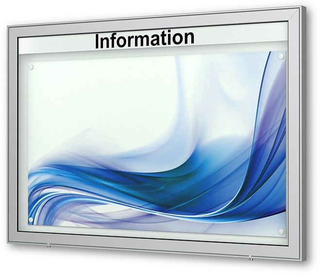 City Light Vitrine Vitrum - Wandmontage Plakatvitrine im City-Light-Posterformat, absolut wetterfest und perfekt für den Aussenbereich geeignetGanzglasfront mit hinterdruckten Passepartoutvollflächige Hinterleuchtung mit stromsparender LED-TechnikAlu-Rahmenkonstruktion mit besonderer Ganzglas-OptikWunschfarbe nach RAL-Farbton möglich Größe - 1390 × 1930 × 180 mm B/H/T - Sichtmaß 1150 x 1710 mm B/H - Plakatmaß 1185 x 1750 mm B/H Montage - vorgerichtet für Wandmontage, inkl. BefestigungsmaterialBautiefe - 180 mm (bei der Variante mit LED-Lichtplatte verringert sich die Tiefe auf 73mm)Öffnung - Klappflügel mit autom. Arretierung in geöffneter StellungVerglasung - Einscheiben-Sicherheitsglas / ESG 5,0 mmOberfläche - Eloxierung in matt-silber (E6/EV1) optional: Farbbeschichtung in beliebiger RAL-FarbeBeleuchtung - mit LED-Langfeldleuchten optional: mit LED-LichtleitplatteSchließung - Getriebeverriegelung mit 4-Kant-BetätigungPlakataufnahme - Klemmleiste mit verdeckt liegender Plakatfixierung über die gesamte Breite - Plakat direkt hinter der Schutzscheibe.